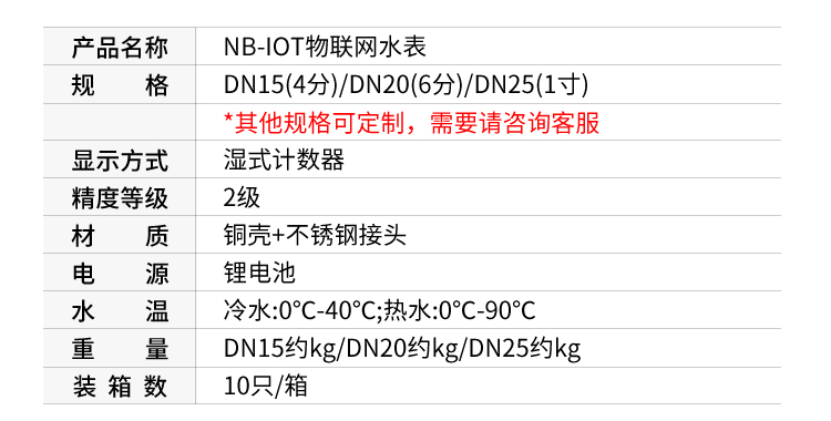 你所在的位置: 首頁 > 產品總匯 > 遠程智能水表4G/藍牙/4G+藍牙 > NB-IOT物聯網水表