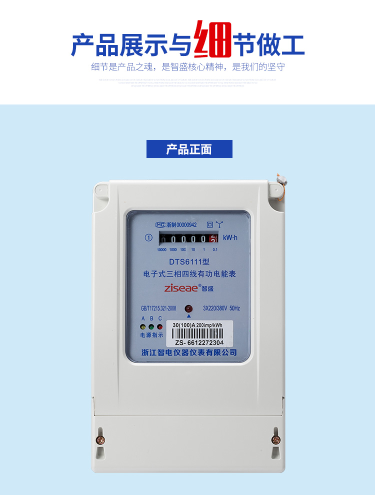 DTS6111型三相四線和DSS6111型三相三線兩種型號三相電子式有功電能表,內部運用了集成電路在經過SMT工藝生產制作而成。結構設計合理,制作工藝先進。跟傳統的電能計量表對比,三相電子式有功電能表的測量準確度高、性能可靠、節能。