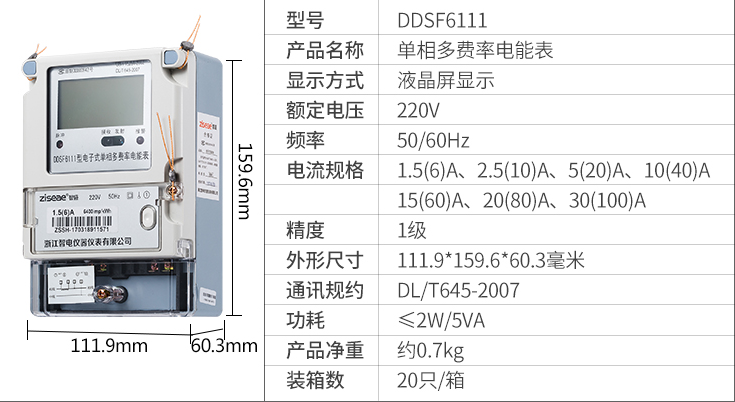 訂購產品: DDSF6111單相多費率電表(2007規約)