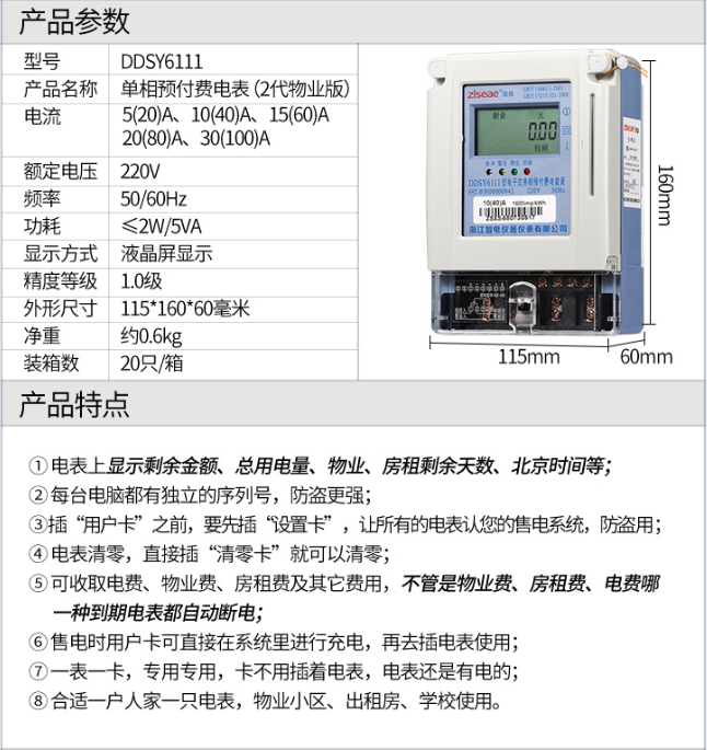 主要特點:應(yīng)用計算機管理,先購電后用電;在額定電流范圍內(nèi)能限制使用功率(由供電部門限定);一表一卡,專卡專用,失卡不失電,補卡再用;電卡能雙向傳遞數(shù)據(jù),能自動斷電告警用戶購電;電量為零時,自動拉閘斷電;并具有一定的防竊電軟件設(shè)計等。