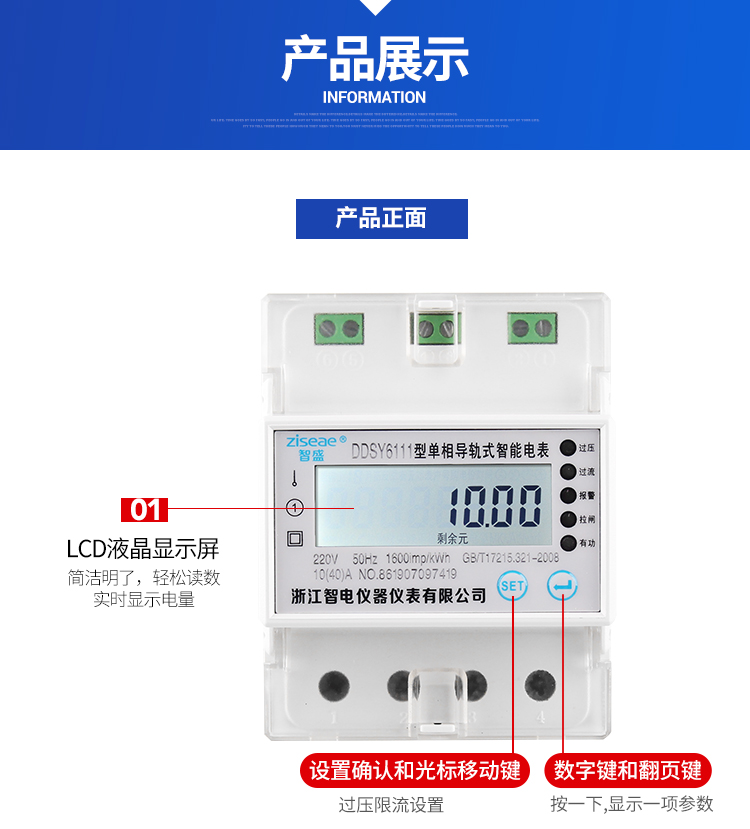 一、導軌式單相遠程付費預付費電能表